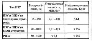Так, микросхема К1601РР1 выполнена на основе p-МНОП-транзисторов, по входу и выходу совместима с ТТЛ-структурами, имеет выходы с тремя состояниями и организацию IK x 4. Время хранения информации 500 ча­сов.