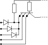 Фрагмент схемы матрицы ППЗУ с многоэмиттерными транзисторами и плавкими перемычками.