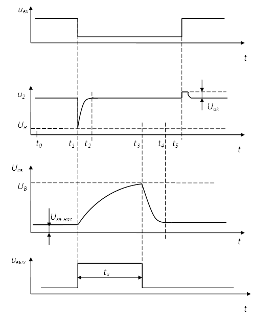 – моменту окончания импульса управления, конденсатор С разряжается до нулевого напряжения, т.е.:
