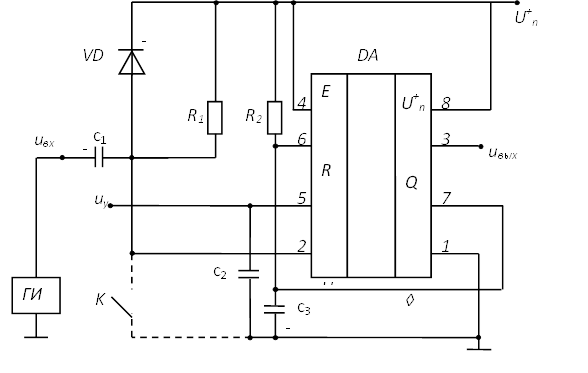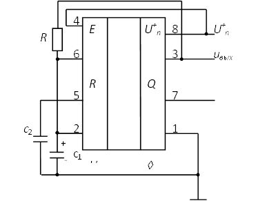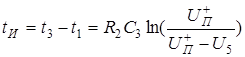 – выход схемы. При этом длительность паузы напряжения на выходе мультивибратора определяется по выражению, аналогичному (3.5):