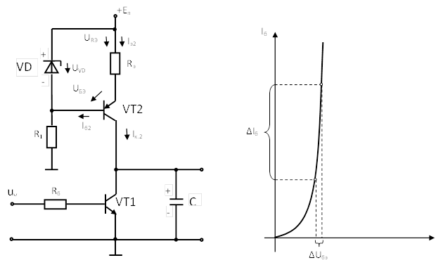 ). Поэтому ток базы транзистора VT2 много меньше тока коллектора и можно записать: