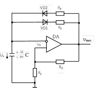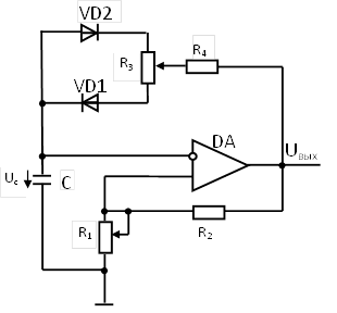 ). Напряжение на стабилитроне является входным для инвертирующего интегратора. Напряжение на выходе интегратора определяется: