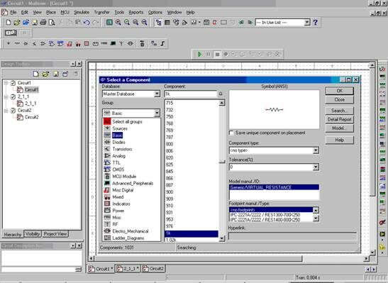 Средства управления базами данных позволяют перемещать компоненты, объединять две базы в одну и редактировать их. Все базы данных разделяются на группы, а они, в свою очередь., на семейства. Когда пользователь выбирает компонент и помещает его в схему, создается новая копия, Все изменения с ней никак не затрагивают информацию, хранящуюся в базе данных.