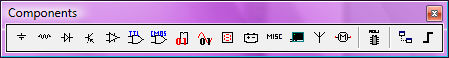 С помощью данной панели инструментов будем добавлять большинство пассивных компонентов, например, резисторы, конденсаторы, и катушки индуктивности.