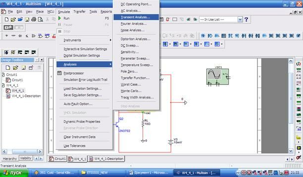 Последовательность команд меню: Simulate / Analysis / Transient Analysis.
