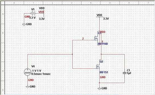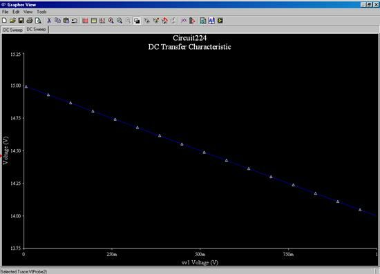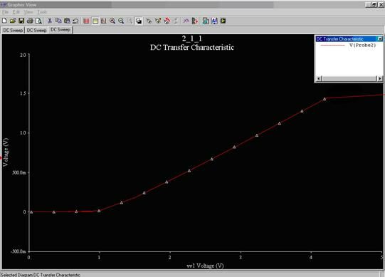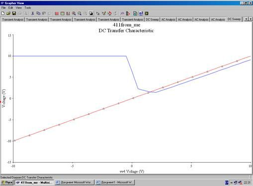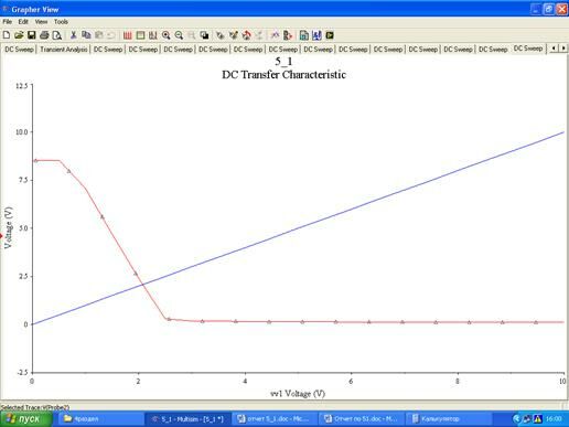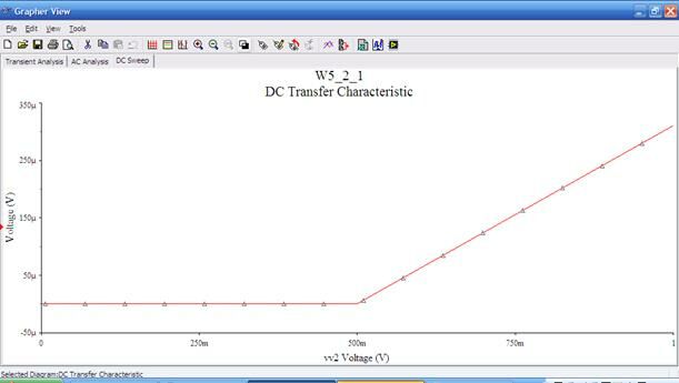 Построение передаточной характеристики (зависимость выходного напряжения от входного) с помощью DC-Sweep Analysis.
