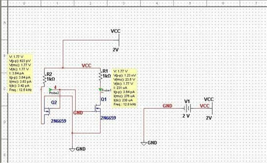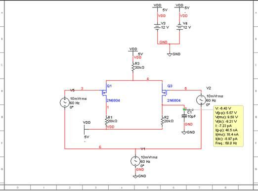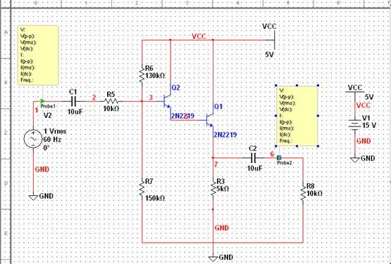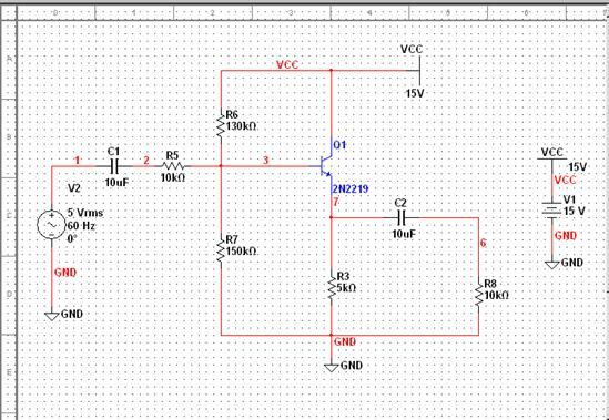 3) В схемах должны присутствовать источники сигнала (тока или напряжения), обеспечивающие входной сигнал, и не менее одной контрольной точки (за исключением анализа схем постоянного тока).