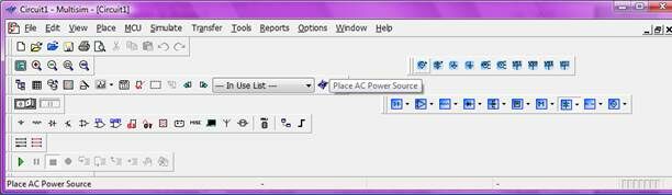 Для быстрого добавления источников питания переменного тока можно пользоваться панелью инструментов VIRTUAL (Виртуальные).