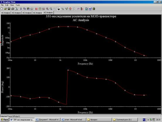 Примеры графиков Амплитудо – и ФазоЧастотных Характеристик, полученных с помощью этого режима:
