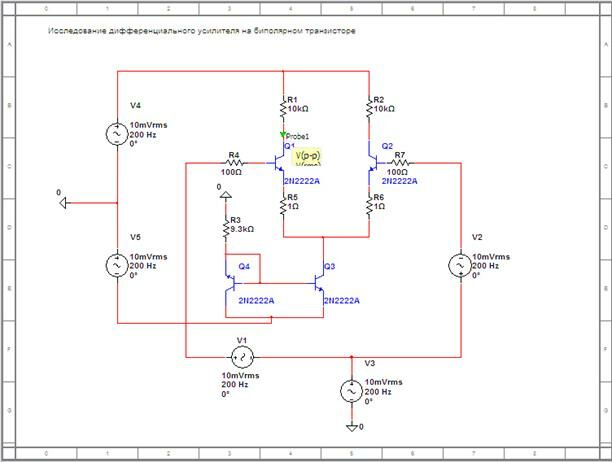Исследование дифференциального усилителя с отражателем на биполярном транзисторе