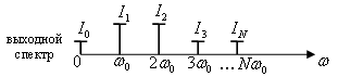 - амплитуды гармоник тока на частотах   На рис. Изображены спектры входного и выходного сигналов