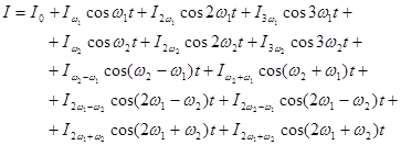 Амплитуды всех комбинационных частот, включая  и их гармоники, можно вычислить с помощью записанных формул. Важно, что в амплитуду каждой комбинационной частоты тока дают вклад амплитуды частот входного напряжения и их степени, что приводит к ряду физических эффектов преобразования частоты, применяемых в электронных устройствах.