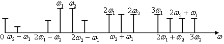 При подаче на нелинейный элемент многочастотного сигнала  спектр комбинационных составляющих ещё более усложняется: