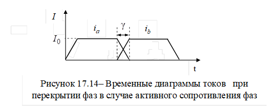 ток в фазе, заканчивающей работу, линейно спадает, а в фазе, начинающей работу, – линейно возрастает (рисунок 17.14).