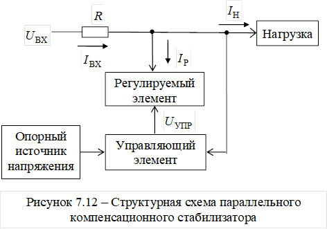 Структурная схема параллельного компенсационного стабилизатора изображена на рисунке 7.12.