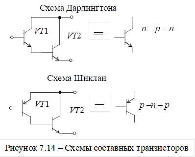 является использование в качестве регулирующего элемента составных транзисторов, схемы которых приведены на рисунке 7.14.