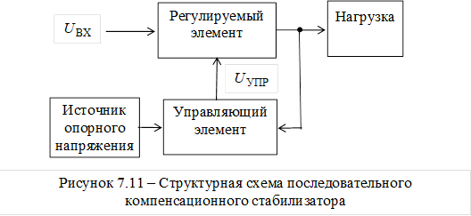 Структурная схема последовательного компенсационного стабилизатора изображена на рисунке 7.11.