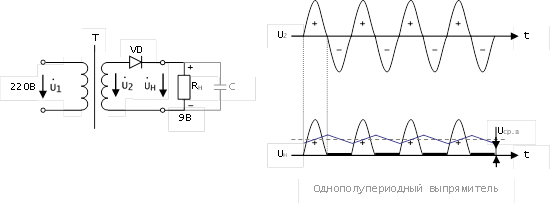 Схема однополупериодного выпрямителя