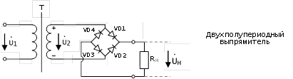 Наиболее распространены двухполупериодные выпрямители, собираемые по схемам: мостовой и с выводом средней точки трансформатора.