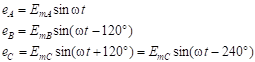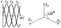 Волновая и векторная диаграммы симметричной системы ЭДС