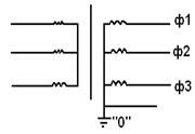 Т.е. центральный, называемый при этом «нулевым», провод на вторичной обмотке трехфазного трансформатора подключается к заземляющему устройству и подводится к потребителям наряду с фазными проводами (ф1, ф2, ф3).