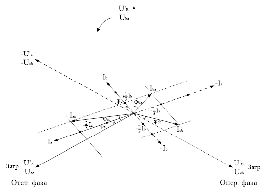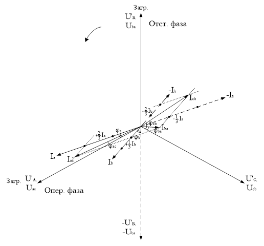 П). У «опережающей» (по ходу вращения векторов) С угол меньше, чем у «отстающей» фазы А. Это существенно влияет на потери напряжения в трансформаторе.