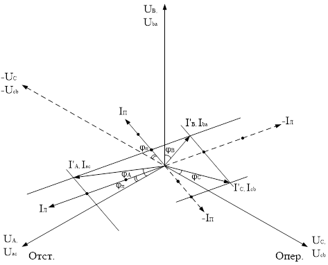 Для построения векторной диаграммы принимается, что токи фидерных зон