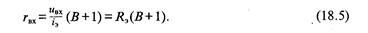 Для расчета выходного сопротивления эмиттерного повторителя нужно в схеме, приведенной на рис. 18.3 б, поменять вход и выход местами. Для этого нужно исключить источник входного напряжения, оставив его внутреннее сопротивление 7?и, а в эмиттерную цепь включить источник тока /вх; как показано на рис. 18.4 а. Расчет схемы замещения, приведенной на рис. 18.4 б, приводит к уравнениям 'в^Ь+^^В+^^б, где i^Bis, откуда находим