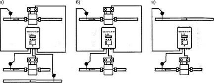 Теплосчетчики устанавливаются по следующим схемам (рис. 9.6, а, б, в)