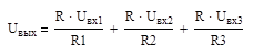Сумматор - устройство, предназначеное для формирования напряжения, равного усиленной алгебраической сумме нескольких входных сигналов, т.е. устройство, которое выполняет математическую операцию суммирования.