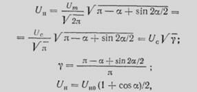 где Uт — амплитуда напряжения питания; Uc, Uно — действующее и среднее значения напряжения питания; у — угол регулирования.