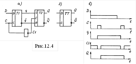 Такой же триггер можно получить на основе D-триггера (рис.12.5б). Поэтому производить Т-триггеры в виде самостоятельных изделий нет смысла и их нет в сериях ИМС.