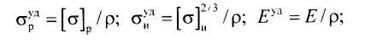 | Материал | Марка | σр, МПа | Е, ГПа | ρ г/см2 | Удельная прочность и жесткость | ||