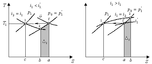 Если энтальпия сжатого газа увеличивается , то Di = i1 – i1' равна площади 1'2ba;