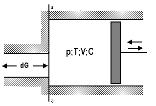 Рассмотрим элементарный объем медленно текущего потока газа в двух сечениях, расположенных по обе стороны от пробки и достаточно удаленных от нее, где движение можно считать стационарным. Если скорости газа в рассматриваемых сечениях одинаковы, то для процесса дросселирования при l = 0 и q = 0 получим