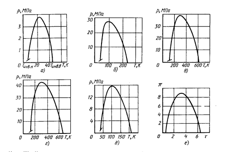 а - гелия; б - неона; в - азота; г - воздуха; д - водорода; е - газа ван дер Ваальса