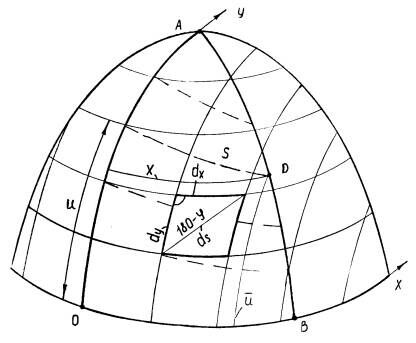 Рис. 2.1. Схема оболочки из ткани на поверхности сферы