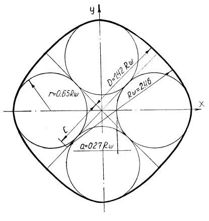 Чебышев определил форму развертки оболочки шара, состоящей из двух частей, и нашел простой способ ее построения дугами окружностей радиусов r и R (рис. 2.3).