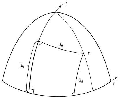 U – кратчайшее расстояние от точки пересечения оси OY линией S заданной точки до оси OX на поверхности;