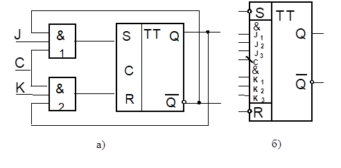 Свойство непрозрачности MS-триггера использовано для построения широко применяемого JK-триггера, схема которого показана на рис.4.5,а