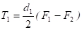 Рассмотрим два случая (рис. 11.4). В первом случае (рис. 11.4, а)  нагрузка отсутствует (Т1=0). Здесь F0 – предварительное натяжение ремня. Во втором случае (Рис. 11.4, б) передача нагружена моментом Т1>0. Здесь F1 и F2 – натяжение ведущей и ведомой ветвей. Окружная сила .