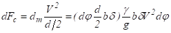 При круговом движении ремня со скоростью V на каждый его элемент массой dm, расположенный в пределах угла охвата, действуют элементарные центробежные силы dFc (рис 11.5). Действие этих сил вызывает дополнительное натяжение Fv во всех сечениях ремня.