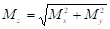 Рассмотрим расчетную схему вала, имеющего цилиндрическое и коническое колеса. Для расчета валов и осей необходимо вычислять изгибающие и крутящие моменты в опасных сечениях. При действии на вал нагрузок в разных плоскостях их обычно раскладывают на две взаимно перпендикулярные плоскости, за одну из которых выбирают плоскость действия одной из сил. После этого строят эпюры изгибающих моментов в этих плоскостях. Для определения результирующего момента, изгибающие моменты Мx и Мy складываются геометрически по формуле