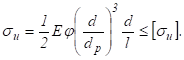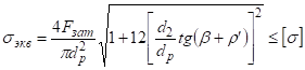 Из формулы следует, что с увеличением эксцентриситета е напряжение в болте будет возрастать. При эксцентричном приложении нагрузки суммарные напряжения в болте могут во много раз превышать напряжения растяжения. Например, при эксцентриситете e=0,5dp суммарные напряжения sS=5,3sp.