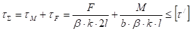Т.к. обычно l/b<1 (фланговые швы короткие), то для простоты полагают, что касательные напряжения распределены параллельно оси детали. Поэтому момент раскладывают на пару сил F=M/b.