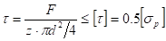 Допускаемые касательные напряжения на срез в металле: