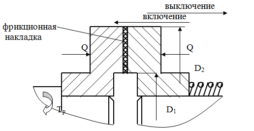 Момент (Тр) часто повышают засчет увеличения числа трущихся поверхностей, т.е. муфты изготавливаются многодисковые.
