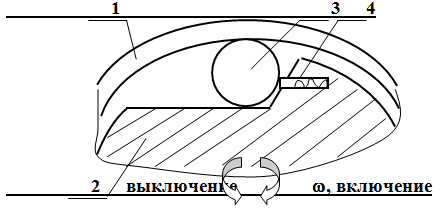 Состоит из ведомой полумуфты (1), ведущей полумуфты (2), шарика или ролика (3), (4) – толкатель с пружиной, предназначен для удержания ролика в постоянном соприкосновении с обоймой.