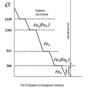 Важное значение имеет полиморфизм железа. На рис. 5 изображена кривая охлаждения железа.