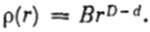 В вышеприведенном примере D нецелое число и лежит между 1 и 3 (3 в данном случае – размерность пространства вложения). Вернемся к примеру и вычислим плотность материи, содержащейся в сфере радиуса r с центром в начале координат. Предполагая, что каждая сфера – единичной массы, для плотности р (r) получим